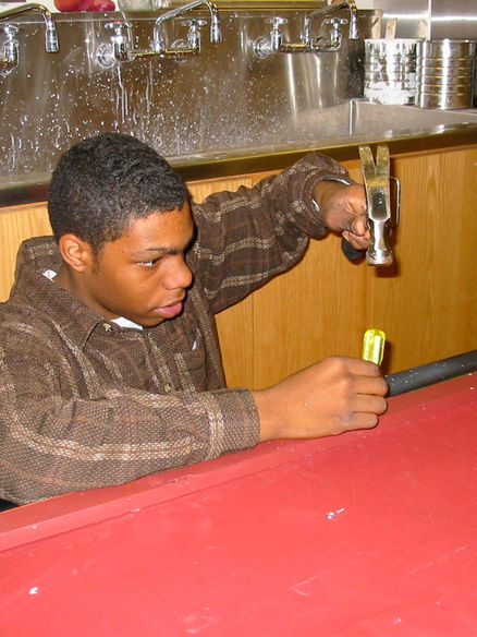 In 2003, Laurie Marshall was an Artist-in-Residence at Westinghouse High School https://discoverpps.org/westinghouse in Pittsburgh, PA. She facilitated three murals, each 8’ x 4’, around the academic subjects of Math, History and Health. 75 students participated.