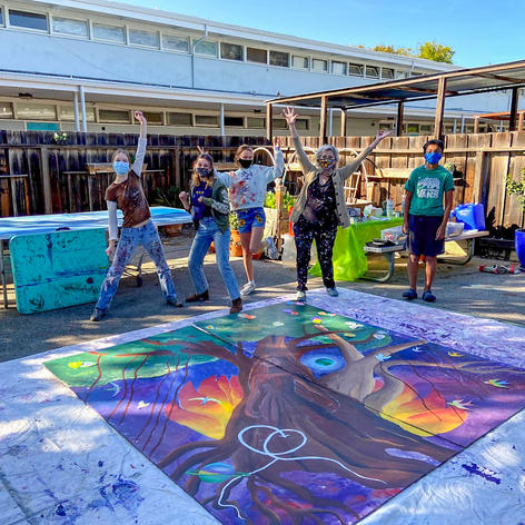 Living Wisdom Middle and High School students design and paint The Banyan Singing Tree with their amazing principal, Kshama Kellogg.